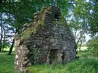 Drumbuie House, built in 1702, is one of the oldest inhabited houses in the Beith area and has been the home of the Boyd family for at least three generations.[55] Drumbuie was part of the Barony of Giffen and was feud out to various local millers and farmers in the 17th century.[56] Close records that Drumbuie Farm incorporates an early 18th-century two-storey house, originally thatched, which was built around 1736 for Hugh Patrick, this being stated on a plaque on the 1815 addition.[57] A James Nevin of Drumbuie was a witness to the will of Hugh Nevin of Kirkwood in 1677.[58] Drumbuie mill was located nearby on the Dusk Water, however no obvious physical remains are extant.