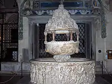 There is another baptismal font, still in use, carved and adapted from a sacramental altar by Matteo Civitali in 1489.