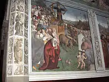 On the right hand is the side chapel of St. Zita (c. 1212-1272), a popular saint in Lucca. Her intact incorrupt body, lying on a bed of brocade, is on display in a glass shrine. On the walls of the chapel are several canvasses from the 16th and 17th centuries depicting episodes from her life.