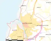 Fox-Pitt deployed his men on the high ground outside the town, liaising with Lanquetot who organised the French troops in the town. The Irish Guards held the right flank to the south-west from the river at St. Léonard to the sea at Le Portel and the Welsh Guards the left flank north-east of the river on the west slopes of Mont Lambert ridge and high ground through St. Martin Boulogne, which made a defensive perimeter of 6 mi (9.7 km).[14] Road blocks had been established by a party of about fifty men of the 7th Royal West Kents from Albert, about 100 men of the 262nd Field Company Royal Engineers and anti-aircraft crew held the right flank of the Welsh Guards, along the roads approaching from the south.[1] Fox-Pitt had left a gap in the perimeter between the Welsh left flank and the coast for the reinforcements expected from Calais.[15] There were 1,500 men of No 5 Group Auxiliary Military Pioneer Corps (AMPC), a mixture of recalled reservists and part-trained troops working as labourers, in the town awaiting evacuation, under Lieutenant Colonel Donald Dean VC.[10] Under French command were the fort garrisons and some French and Belgian training units of limited military value.[16] Lanquetot had told Fox-Pitt that the French forces in Boulogne were "folded up" which Fox-Pitt inferred meant that they were ready to give up.[17]