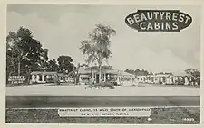 Bayard's commercial development through its early years reflects its use as a stopping point, with gift shops, restaurants and places for travelers to stay.[1] Among its early historical buildings was The Bayard Inn. Opened in 1899 by Juliet Wing, a Union soldier's widow, as a combined general store and hotel, called The Wing Hotel, the Inn flourished until its closure in 1947, when it became a mix of residence and business with a post office and brothel on the ground floor.[1][5] A proposal to designate the building, then known as the Bayard Country Store, as an historical landmark failed in December, 2001, when the owner wished to sell the building and protested its designation. In order to pass the building under owner protest, Jacksonville's Historic Preservation Commission would have had to find that the building sufficiently met the city's criterion, but it did not, although it did find that the building was a "significant reminder" of the city's heritage and was worthy of preservation.[5] The Bayard Inn was demolished in 2005, but other historically significant buildings—including the public school reserved for use by black children—still remain.[1]