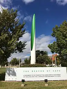 The Beacon of Hope is a steel, columnar monument in Oklahoma City, Oklahoma. It is located in Stiles Circle Park, near the University of Oklahoma Health Sciences Center, the Oklahoma School of Science and Mathematics, and the Oklahoma Department of Commerce headquarters.[1] The monument is visible from Interstate 235 and downtown Oklahoma City. Stiles Circle Park is maintained by the City of Oklahoma City's Parks and Recreation Department.