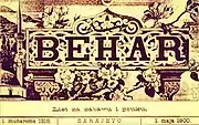 Behar was a Bosniak political magazine published twice monthly between 1900 and 1911.[2] The word behar (blossom in Bosnian) derives from Persian bahār (spring, blossom).[3] It was established in 1900 by Bosniak intellectuals Edhem Mulabdić, Safvet-beg Bašagić, and Osman Nuri Hadžić, assisted financially by Ademaga Mešić.