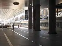 Trains used platform 1 of Beijing West railway station, which was connected to the check hall for this particular through train service. Passengers coming from or going to Hong Kong clear Chinese immigration and customs in the hall. The part of the platform between the hall and the passenger cars for Hong Kong is cordoned off by police.
