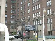 The Belcrest Apartment Hotel was built in 1926 as a residential hotel, catering to wealthy tenants.[4] The building exemplified what was, at the time, a novel style of living arrangement: an apartment building that offered amenities normally associated with a hotel.[4] Daily maid service and a restaurant on the premises set this apart from a conventional apartment building. The building was developed by Jacob Singer and Max Hamburger, who hired Charles N. Agree as both architect and general contractor for the building. In 1929, Singer and Hamburger signed an agreement to make the Belcrest a part of the Albert Pick hotel chain. The property was purchased by Detroit based real estate firm Holcomb Development Company in Fall of 2022 and is currently scheduled to be fully renovated.[3]