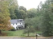 Eckstein transferred the land that the main house is located on to his daughter Magdalena and son-in-law Conrad Weber in 1755, and after the death of Eckstein in 1763 the land was split among his remaining children. Two of the remaining children of Eckstein became members of the religious Ephrata Cloister in Lancaster County, and all had sold their land to Weber by 1786.[7] Though the exact date of construction of the main house at Belfield is not known, Peale later wrote that it was built "by a Dutchman".[8] As Weber was the son of a Dutch immigrant, this would date the house to sometime after 1755.