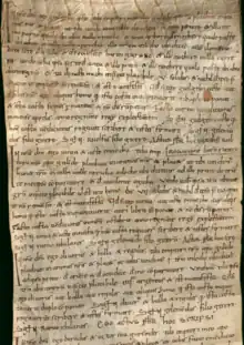 The Benasque and Ballabriga rolls are two sets of legal charters from 11th-century Spain. They formed the private archive of a laywoman named Sancha from the County of Ribagorza.[1] The parchment documents were sewn together to form two rotuli (rolls), wound around a wooden spindle.[1][2] There are 70 charters in the Benasque roll and 27 in the Ballabriga. The rolls concern properties in the Benasque and Ballabriga valleys acquired by Sancha and her two husbands, Enardo (m. 1006–1019) and Apo Galindo (m. 1020–1045).[1] When the properties were acquired by the monastery of Santa María de Obarra later in the century, the monks preserved the rolls rather than copying the contents into their cartulary.[1][3] They are now kept in Madrid and Zaragoza, respectively.[1]