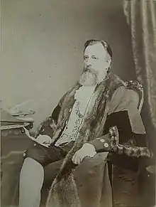 On the death of Brown early in 1853, Scott received a requisition as a liveryman of the Wheelwrights' Company, to stand for Chamberlain; the office was in the gift of the liverymen of the various livery companies. For nearly a century the post had been filled from the ranks of aldermen who had been Lord Mayor of London. Scott had for his opponent Alderman Sir John Key, who had been twice Lord Mayor (in 1830 and 1831). After a four days' poll, costing the candidates £10,000, Key was elected by a small majority (224 votes).[1] At the end of 1853, after continuing friction produced by the contest, Scott resigned his appointments under the corporation and a year later became secretary of the new Bank of London, which he had taken part in establishing. In July 1858, on the death of Sir John Key, he again became a candidate for the office of Chamberlain and was elected without opposition. A shrewd financier, Scott enabled the corporation to weather Black Friday of the panic of 1866 without loss.[1]