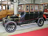 The berline body style initially carried over from the carriage to the automobile with the chauffeur in the open at the front and an enclosure behind with two seats facing each other as opposed to facing forward. As with the coupé and the brougham, the term evolved with the movement of the driver and controls into an enlarged enclosure, which resulted in turning the front seat to face forward. The term "berline" is now the French term for the saloon or sedan.[7]