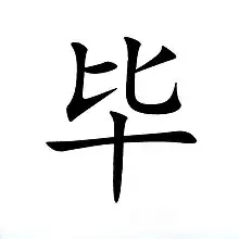 Bi (traditional Chinese: ; simplified Chinese: ; pinyin: ; Wade–Giles: Pi) is a Chinese surname. It is listed 76th in the Song dynasty classic text, the Hundred Family Surnames.[1]