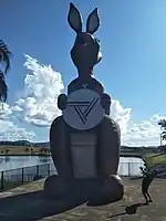 | The Big Bogan | Nyngan | 2015 | 5.96 metres (19.6 ft) high | The Big Bogan is the brainchild of Reverend Graham McLeod from Nyngan's St Mark's Anglican Church.[15][16] Located on Pangee Street next to the railway lines. In 2022 a dog was added.[17] | ![]() Big Bogan, Nyngan, 2017 (01) |