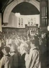In 1941, The headmaster the Rt. Rev. Edward Bidwell left to become the Assistant Bishop of Canterbury and the Bishop of Ontario. In 1955, the 18th Governor General of Canada the Rt. Hon. Vincent Massey inspected the BCS cadet corps. In 1958 the school gym/ballroom was consecrated as St.Martin's Chapel by order of the Lord Bishop of Québec, The Rt. Reverend Philip Carrington and BCS students no longer used the chapel at Bishop's University.[5] An organ was installed behind the Cross in 1958. A stained glass window was given to BCS during the closing ceremony of St. Helen's School, Dunham, Québec. It is now installed at the top of the staircase to the chapel. BCS has grown more secular entering into the 21st century.