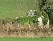 Bix Brand's original parish church of Saint James is a small Norman building in Bix Bottom, about 1 mile (1.6 km) north of the village. It has a nave, chancel and several Norman lancet windows.[2] Later additions include the Perpendicular Gothic east window and another Perpendicular window in the south wall.[2] In 1874 the architect John Gibson completed the village's new Church of England parish church, closer to the centre of the village, also dedicated to Saint James.[2] The new church has a north aisle and transept as well as a nave and chancel.[2] Two of the north aisle windows contain sections of late 15th century Flemish stained glass.[2] The old church was abandoned in 1875[2] and became ruined and overgrown.[3][4]