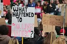 Since the beginning of the Black Lives Matter movement in 2013, with the hashtag #BlackLivesMatter,[84] the movement has been depicted and documented in film, song, television, literature, and the visual arts. A number of media outlets are providing material related to racial injustice and the Black Lives Matter movement. Published books, novels, and TV shows have increased in popularity in 2020.[85] Songs, such as Michael Jackson's "They Don't Care About Us" and Kendrick Lamar's "Alright", have been widely used as a rallying call at demonstrations.[86][87]