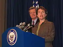 In 1998, Lincoln returned to politics and ran for the Senate seat being vacated by incumbent Senator Dale Bumpers.[20] She defeated her Republican opponent, Fay Boozman, a state senator and the brother of future U.S. Representative John Boozman, 55 percent to 42 percent.[21][22][23]