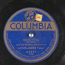 Miller's "Sweet Pal" recorded by Lewis James in 1923