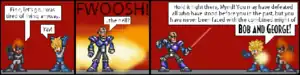 Bob and George was a sprite-based webcomic which parodied the fictional universe of Mega Man. It was written by David Anez, who at the time was a physics instructor living in the American Midwest.[2] The comic first appeared on April 1, 2000, and ran until July 28, 2007. It was updated daily, with there being only 29 days without a comic in its seven years of production and with 2568 comics being made altogether.