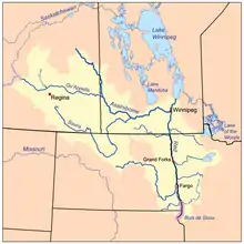 ![]() Red River drainage basin, with Bois de Sioux River highlighted | |