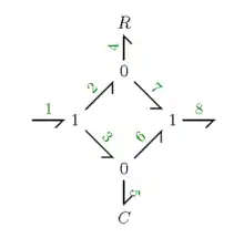 2. Insert R and C bonds at their own 0-junctions between the 1 junctions where they act