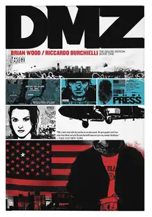 DMZ launched as a monthly series on August 9, 2005. It ran for seventy-two issues, one of the longest runs in Vertigo history,[47] and was collected in twelve trade paperbacks. A Deluxe Edition of five hardcovers were published in 2014, followed by softcover editions of same in 2016. A two volume compendium set was published in 2020.[48]