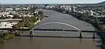 The Brisbane River, running through Brisbane, Queensland, Australia, is crossed by fifteen major bridges, from the Sir Leo Hielscher Bridges downstream to the Centenary upstream. The river meanders through an urban area that comprises 2,562,000 people.