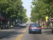 State Street in downtown Bristol, Tennessee (left) and Bristol, Virginia (right)