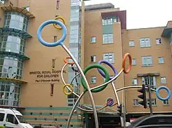 An extension was built to accommodate services moved from Frenchay Hospital in 2014, including neuroscience, scoliosis surgery, burns and plastic surgery, bringing all inpatient children's services in Bristol to one location.[10][11] In 2015, a neuro-rehabilitation unit was built to support the moved services.[12] In May 2014, a new helipad on the roof of the neighbouring Bristol Royal Infirmary became fully operational and will receive air ambulances from Bristol and the surrounding area, which will speed up transfer times for patients who are air lifted to the hospital. The HELP Appeal supported the construction of the helipad with a grant of £500,000.[13]