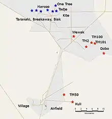 - Aerial photo of the Taranaki and Kite test sites (Maralinga village & airfield are situated approx 20 miles to the South)