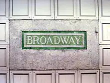 Broadway station was originally built as a three-level station, with six stairways to allow easy transfer between streetcars and subway trains. Some streetcars stopped at a surface-level platform, others in a tunnel segment just below ground, while subway trains used the lowest-level tunnel. Each level consisted of two tracks and an island platform.[10] The street-level platform served streetcars that ran from the Tremont Street Subway to City Point and South Boston via the Pleasant Street Portal and Broadway, on the route 9 streetcar line. Buses replaced the single line to Bay View (which originally used the middle-level tunnel segment) in 1929, but the City Point line lasted until March 1, 1953 before being bustituted.[10]