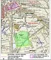 Fig. 3 is based on a map of 1831 drawn up for the parliamentary committee tasked with deciding the boundaries of the new parliamentary boroughs proposed by the Reform Bill. The district of Broomfields has been overdrawn. Broomfields was about 970 yards from North to South and a maximum of 860 yards east to west amounting in total to about 130 acres. The map shows that in 1831 the area contained almost no buildings except a thin scattering along its Wakefield Road boundary. To the south east was the Bowling Ironworks with its growing network of mineral tramways. The ironworks had a major influence on the economic history of Broomfields. To the south are shown Bowling Dye Works[7] and Bolling Hall with its access road "Bolling Hall Lane" running through Broomfields with the only other lane in Broomfields – "Mill Lane" running at right angles to it. The "mill" referred to was not a textile mill but the very ancient water powered manorial "Bowling corn mills". The only steam powered textile mill in Broomfields in 1831 was the "Prospect Mill" in Wakefield Road built in 1819 by the Bowling Iron Works company for letting out on a "room and power" basis.