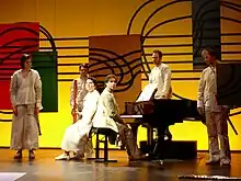 His need for diversity in modes of expression led Belthoise to meet the Syrian singer-songwriter Abed Azrie. Together they produced recitals and an album "Chants d'Amour et d'Ivresse" (2002) recorded live at Radio-France. He also composed for the wind quintet the Concert Impromptu for its show'Nouvelles Folies d'Espagne' (2002). His artistic collaboration with Le Concert Impromptu has also given rise to several shows, in which a polysemy is invented that brings together poetry, contemporary music and scenography. Thus, were created Bleu d'Outremer pour stimuler l'esprit (2005), echoing René Char's fulgurances and Vieira da Silva's painting, Mozart de Vienne (2007), meeting and confrontation between Bernard de Vienne, living composer and Wolfgang Amadeus Mozart, Pèlerinage Rothko (2009), inspired by Mark Rothko's vibrant painting. Their new production for the 2013 season is entitled BWK, musical theatre in homage to Berthold Brecht, Kurt Weill and Paul Klee. Passionate about poetry and improvisation, he has been working since 2003 as a pianist, composer and actor with the Compagnie Alain Rais for Le Poète à New York (2003), Traverser (2006) and gives poetry-music recitals with Alain Rais, Inês de Medeiros and Matthieu Fayette. In 2008, Belthoise created the Trio Pangea with Adolfo Rascón Carbajal (violin) and Teresa Valente Pereira (cello) and performs in Spain, France and Portugal. The new album of the Trio Pangea which was released in 2013 was dedicated to composer Emmanuel Hieaux's[12] chamber music published by Disques Coriolan in the Musique d'Aujourd'hui series. For the 50th anniversary of Francis Poulenc's death in 2013, he gave the complete works for wind quintet and piano in two concerts with the Concert Impromptu for the radio Antena 2 then recorded with the same ensemble an album dedicated to Darius Milhaud in collaboration with the RDP.