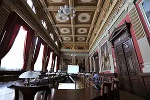Győző Czigler designed the Alkomány Street campus of the Budapest Academy of Commerce in 1882, and the construction was finished in 1885 when the construction of the Hungarian Parliament Building had begun directly next to it. The campus at Alkotmány Street is still one of the main campuses of the Budapest Business School. BBS's campus at Markó Street is also located in downtown Budapest. It is housed in a building designed by Ferenc Kolbenheyer in neoclassical style in 1872. The Markó Street campus of the BBS is a close but more modest kin of the top-ranked ETH Zurich, designed by Gottfried Semper and Gustav Zeuner. There is a room at the Markó Street campus named the Lotz Room, full of paintings painted by Károly Lotz and Mór Than. Many of the conferences of the Hungarian Presidency of the Council of the European Union were held in this room and in other lecture rooms on the Markó Street campus. Budapest Academy of Commerce was a private business school up until 1949, when the government nationalised it and made it a public business school.