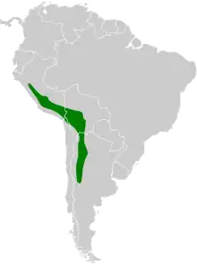 Subspecies U. v. jelskii of the buff-breasted earthcreeper has by far the widest distribution. It is found in the Andes from Peru's Department of Lima south into Chile's Tarapacá Region and through western Bolivia into far northwestern Argentina's Jujuy Province. U. v. saturata is found in the western Andes of central Peru between the departments of Ancash and Pasco. The nominate U. v. validirostris is found in northwestern Argentina from Salta Province south to Mendoza Province and east into western Córdoba Province.[4]