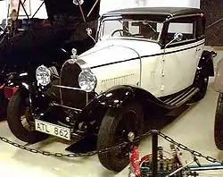 The Bugatti Type 49 was an improved Type 44 with a slightly bigger engine with double ignition and a cooling fan. Aluminium wheels were optional. A large proportion was originally supplied with enclosed bodywork but few remain in this form today as many have been re-bodied in a more sporting form. Produced from 1930 through 1934, about 470 examples were built.[1] The Type 49 was the last of the early 8-cylinder single cam Bugatti line which began with the Type 30, though its gearbox would later be reused on the Type 55.