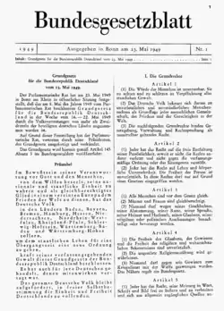 Bundesgesetzblatt, Bonn, 23 May 1949, No. 1 with the Basic Law for the Federal Republic of Germany