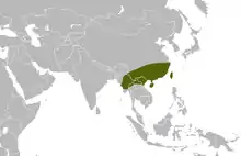 Although it can be found in elevations up to about 1,500 m (4,900 ft),[1] it is far more commonly found in humid lowland areas, and most often observed in subtropical, marshy regions of its range.[14] It is also frequently found in shrublands, woodlands, agricultural fields, and mangroves, often adjacent to water, such as rivers, streams, rice paddies, and ditches. It may also sometimes be found in villages and suburban areas.[13] It is able to survive in other habitats also.[1]