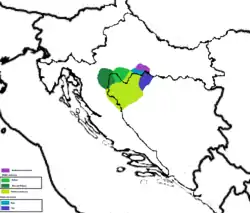 - Dolinci- settled north of Vlahi and south of Poljanci. Their villages are: Bajngrob (Weingraben), Kalištrof (Kaisersdorf), Dolnja Pula (Unterpullendorf), Frakanava (Frankenau), Šuševo (Nebersdorf), Filež (Nikitsch), Gerištof (Kroatisch Geresdorf), Mučindrof (Großmutschen), Pervane (Kleinmutschen), Veliki Borištof (Großwarasdorf), Mali Borištof (Kleinwarasdorf), Longitolj (Langenthal) and Mjenovo (Kroatisch Minihof), is a Central Chakavian dialect