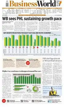 BusinessWorld is a business newspaper in the Philippines with a nationwide circulation of more than 117,000 (as of March 2014).[1] Founded in 1967 as Business Day, it is Southeast Asia's first daily business newspaper.[2]