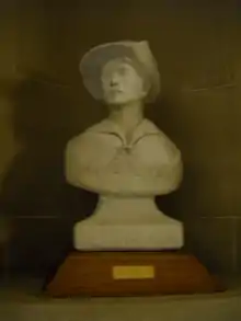 This bust was sculpted by David McLary in 1985, an Indianapolis-based artist and employee of the Indiana State Museum.[1] Using a casting process a mold was made of the sculpture and from this mold a preliminary cast was made. After the cast went through a refining process a second mold was made from the preliminary cast. It is from this second cast that six other busts were cast and finished in a variety of fashions. There were eight total casts. Other than the sculpture in the Indiana Statehouse, only two of the casts' whereabouts are known. One bust was presented to the George Rogers Clark Elementary School in Clarksville, Indiana. Upon the request of former Councilman John Minta, one bust was then presented to the Clarksville Town Hall.[1]