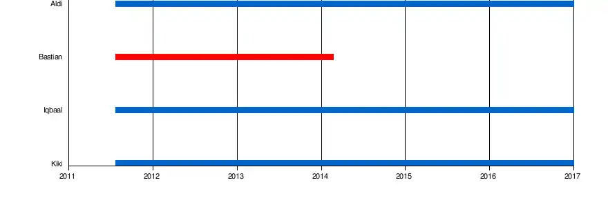 | Past members | Bastian Bintan Simbolon/Babas. Alvaro Maldini Siregar/Aldi Teuku Rizky Muhammad/Kiki Iqbaal Dhiafakhri Ramadhan/Iqbaal. |