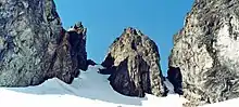 Gunsight Notch, which is lower on the Cache Glacier and should not be mistaken for Cache Col
