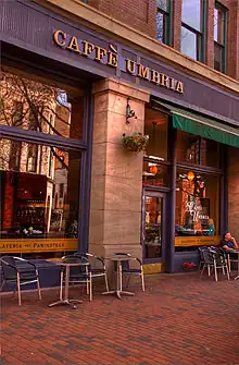 Caffè Umbria is a coffee roaster based in Seattle, with additional locations in Portland, Oregon, as well as Chicago. In addition to coffee, the menu has included paninis, pastries, and gelato.[4]