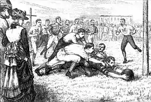 When tournaments began and organized by the Indian Football Association in the late 19th century, CC&FC shared rivalries with two all-European teams Dalhousie AC and Calcutta Rangers, along with fully indigenous side Mohun Bagan AC.[149][150][79][151][152][153] In later years, other rivals of the club were Mohammedan Sporting, Aryans, and British regimental outfits.[26][154][155] From 1870s and 80s onwards, club's rugby team predominantly competed against two contemporary sides Bombay Gymkhana and Madras Cricket Club,[156] while currently sharing rivalries with Jungle Crows and Army Red.[157]