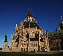 The Library of Parliament, situated behind Centre Block. All the parliament buildings are designed in a Gothic Revival style
