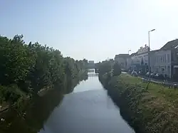 The Nieuwpoort–Dunkirk Canal (Dutch Kanaal Nieuwpoort–Duinkerke, French Canal Nieuport–Dunkerque) is a canal which links the Belgian coastal town of Nieuwpoort with the French port Dunkirk. The Nieuwpoort–Dunkirk Canal forms an extension of the Plassendale–Nieuwpoort Canal, and runs for 32 kilometres (20 mi) pretty much parallel to the coast line, within two to four kilometers from the sea.