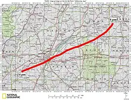 ![]() Official track of the Candlestick Park tornado through central Mississippi | |