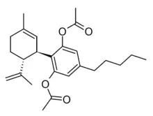Cannabidiol diacetate (CBD-di-O-Acetate, CBD-DO) is a semi-synthetic derivative of cannabidiol derived by acetylation of the OH groups,[1] which presumably acts as a prodrug for CBD. It has been found as a component of grey-market cannabis products such as e-cigarette liquids and edible gummy lollies.[2]