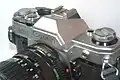 The AE-1 has a Canon FD breech-lock lens mount and accepts any FD or New FD (FDn) lens. It is not compatible with Canon's later Canon EF lens mount, though adapters made by independent manufacturers can be found. The camera will also accept Canon's earlier FL-mount lenses through the use of stop-down metering.[3] Original FD lenses, introduced in 1971, do not rotate in the mounting process; instead, a locking ring at the base is turned to attach the lens. This was often criticized as being slower than the bayonet mounts of competing cameras.[4]: 201 The counter argument, though, was that as the lens/body mating surfaces did not rotate, there was no wear that could affect the critical distance from lens to film plane. In 1979, Canon introduced the New FD series of lenses that rotate the whole outer lens barrel to lock. The inner lens barrel remains stationary, and thus the signal levers and pins still do not rotate. During the late 1970s, there were over 50 Canon FD lenses available for purchase. They ranged from a fisheye FD 15 mm f/2.8 SSC to a FD 800 mm f/5.6 SSC, plus special purpose lenses such as a 7.5mm circular fisheye and a 35 mm tilt and shift lens.