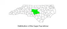 | Counties in North Carolina in which the Cape Fear Shiner is found; green indicates presence | |