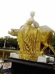 The Capitol Park and Lagoon is a provincial park located in Bacolod, Negros Occidental, in the Philippines. One of the features of the park are matching sculptures depicting a woman standing alongside a water buffalo and that of a man pulling another water buffalo. These sculptures are located at the northern and southern ends of the lagoon. These figures were executed by Italian sculpture Francesco Riccardo Monti who also did the sculptures of the Metropolitan Manila Theater and the University of the Philippines - Visayas Iloilo campus. Guillermo Tolentino also contributed as a sculptor of the figures.